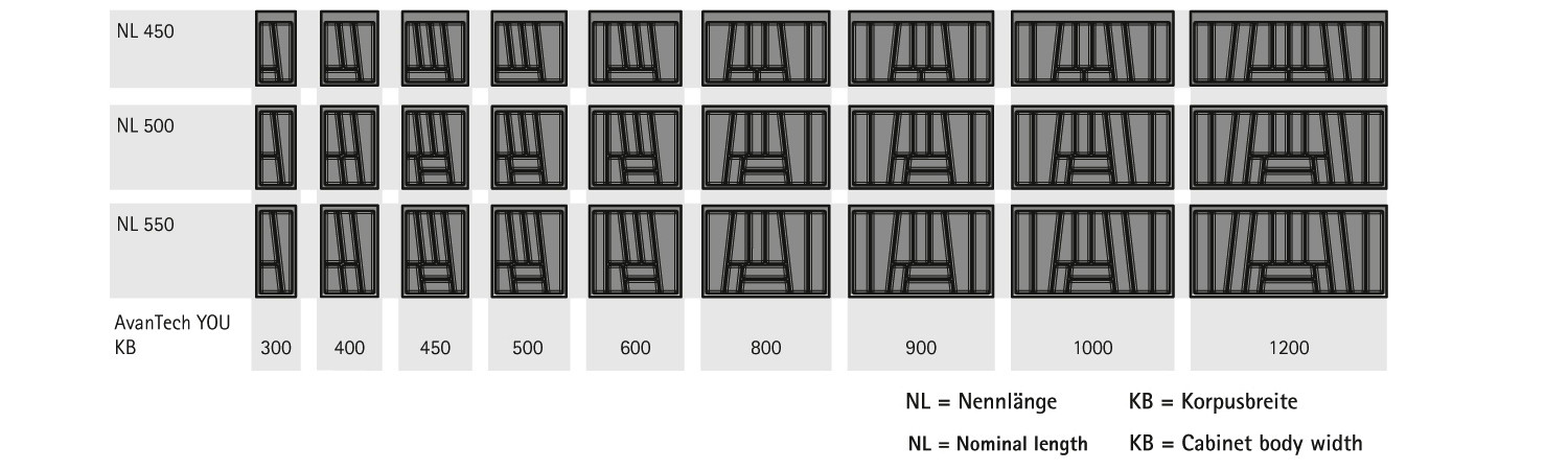 | Varianten | Innenorganisation für Schubkästen und Innenschubkästen |