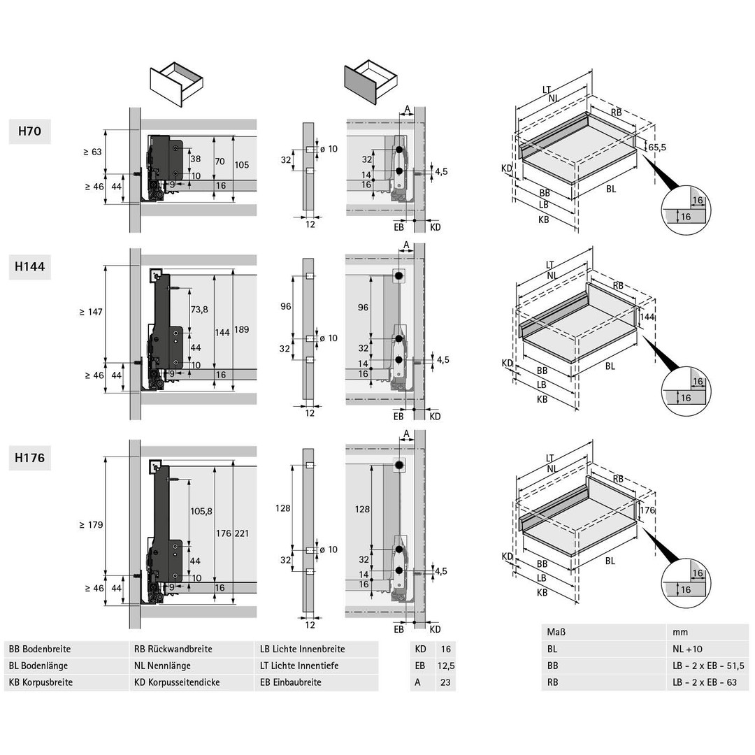 | Ausführung | Hettich Quadro Compact mit Push to open, 470 mm |