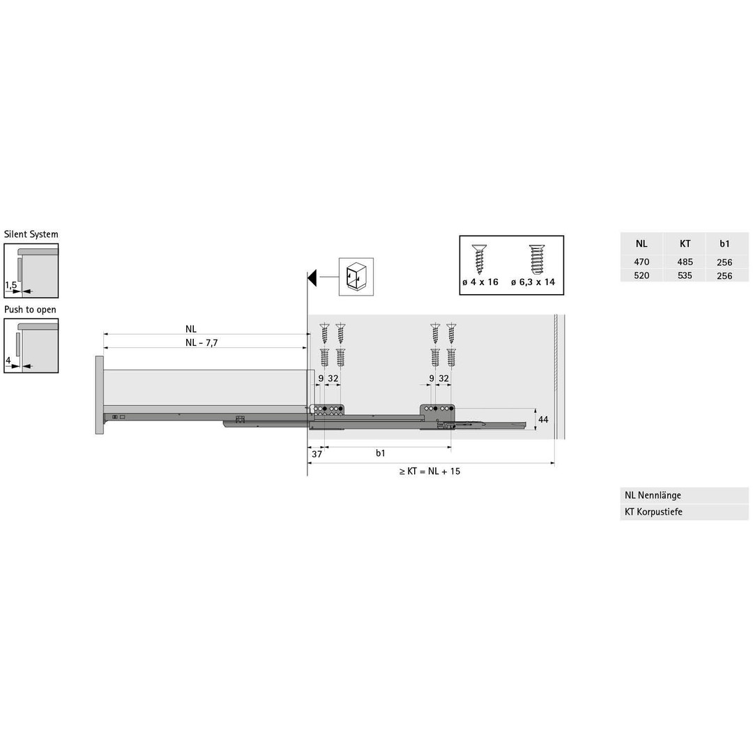 | Ausführung | Hettich Quadro Compact mit Push to open, 470 mm |