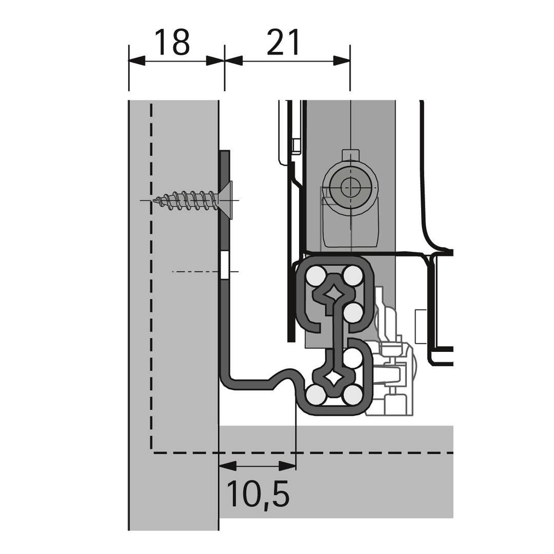 | Einbaubreite / Korpusseitendicke | EB 10,5 (Korpusseitendicke 18 mm) |