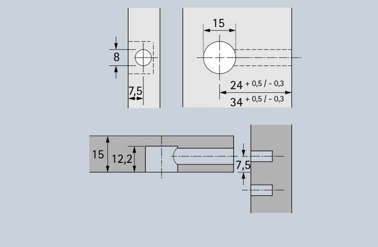 - Doppelte Sicherheit durch Innen- und Außenrastung - der Dübel wird immer zentrisch angezogen, ein Versetzen der Möbelteile ist somit ausgeschlossen!