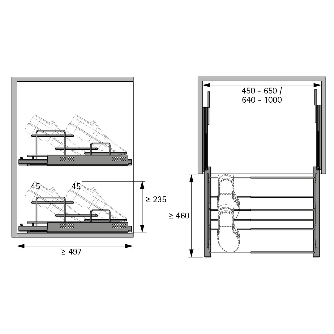 HETTICH Schuhauszug breitenverstellbar LB450-650 mm verchromt