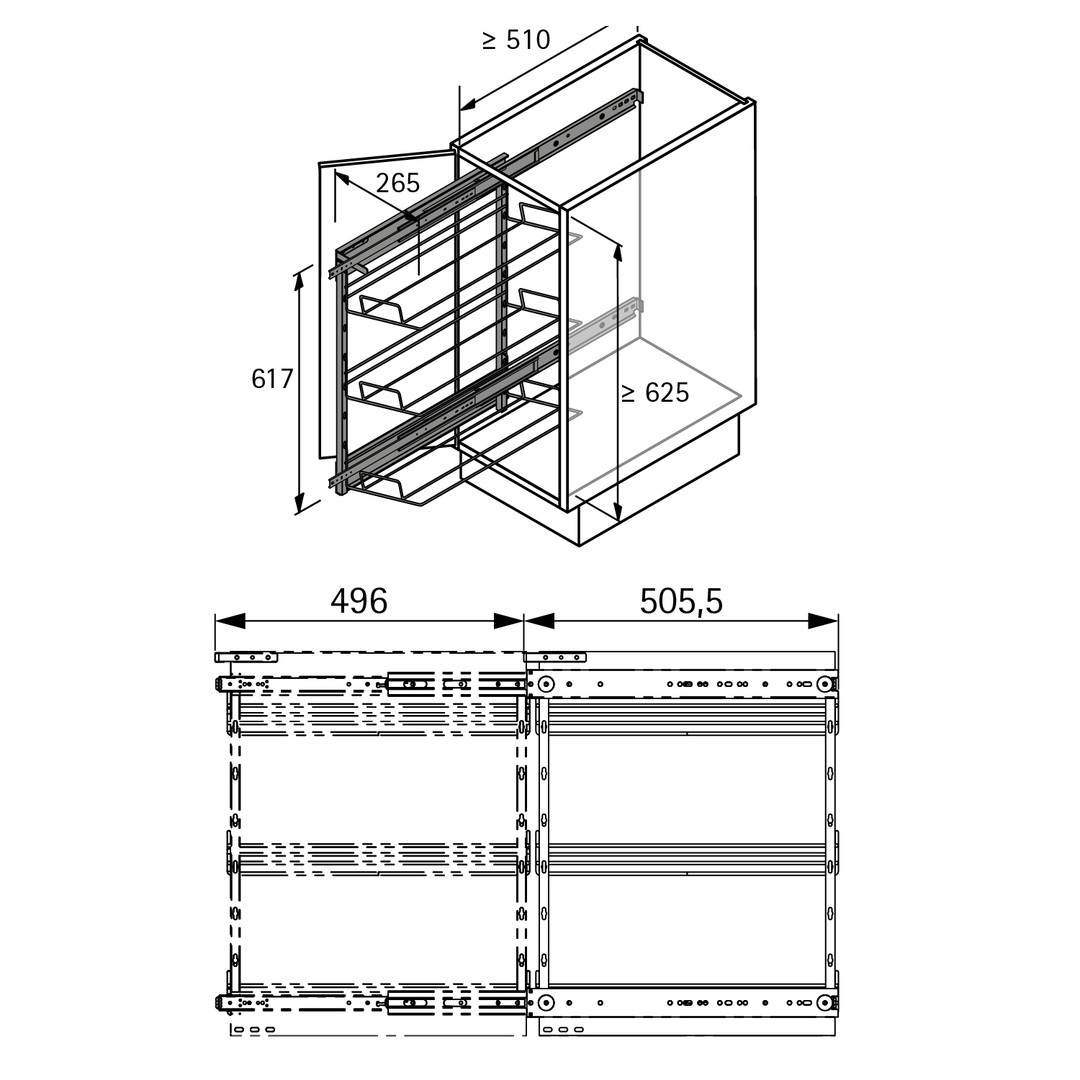 | Ausführung | Schuhauzug mit 3 Ablagen L/R mit Kugelvo llauszug anthrazit |