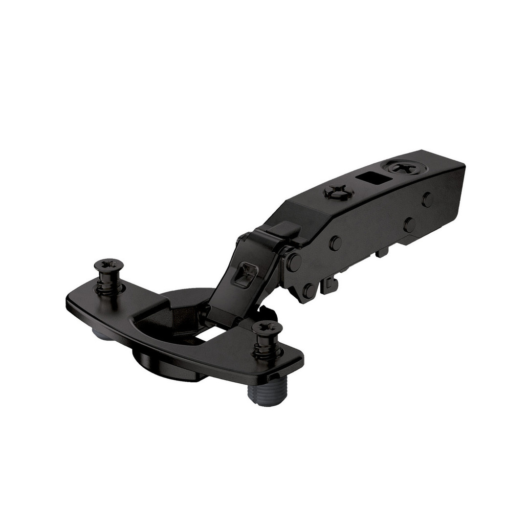 Hettich Sensys Dünntürscharnier, Türdicke ab 10 mm, mit integrierter Dämpfung (Sensys 8646i), in obsidianschwarz, vorliegend, Öffnungswinkel 110°, Bohrbild TH 52 x 5,5 mm, mit Spreizmuffen (ø 10 x 8)