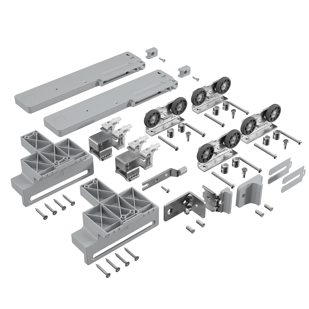 HETTICH TopLine 1 Set Laufteile mit Dämpfung für 2-türigen Schrank, 75 kg