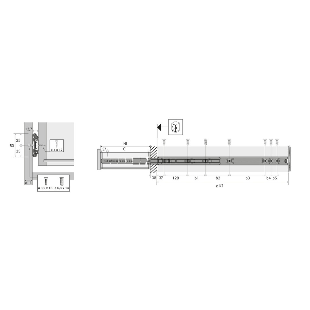 HETTICH Überauszug Kugelauszug KA 4932-Set - links/rechts - Seitenmontage - 12,7 mm Einbaubreite - 60 kg - 250 mm