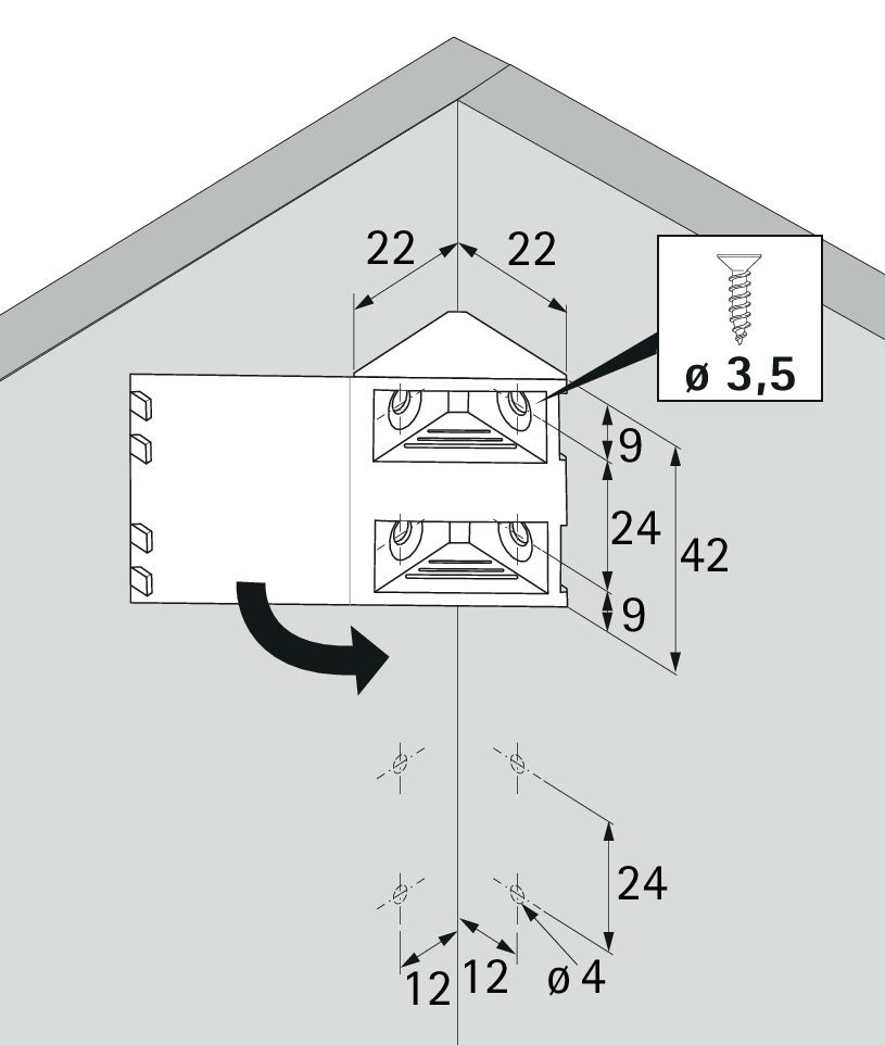 - Mit Senkkopfschraube ø 3,5 mm zu befestigen