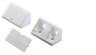 - Die angespritzte Abdeckkappe verschließt den Eckverbinder und verdeckt so die Schrauben