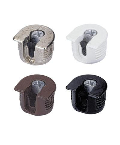 - Verbindungen von Fachböden mit Seitenwänden nach bewährtem Exzenter-Rastprinzip in die angeschnittene Bohrung mit ø 20 mm wird der Beschlag eingedrückt