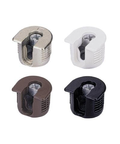 - Verbindungen von Fachböden mit Seitenwänden nach bewährtem Exzenter-Rastprinzip in die angeschnittene Bohrung mit ø 20 mm wird der Beschlag eingedrückt