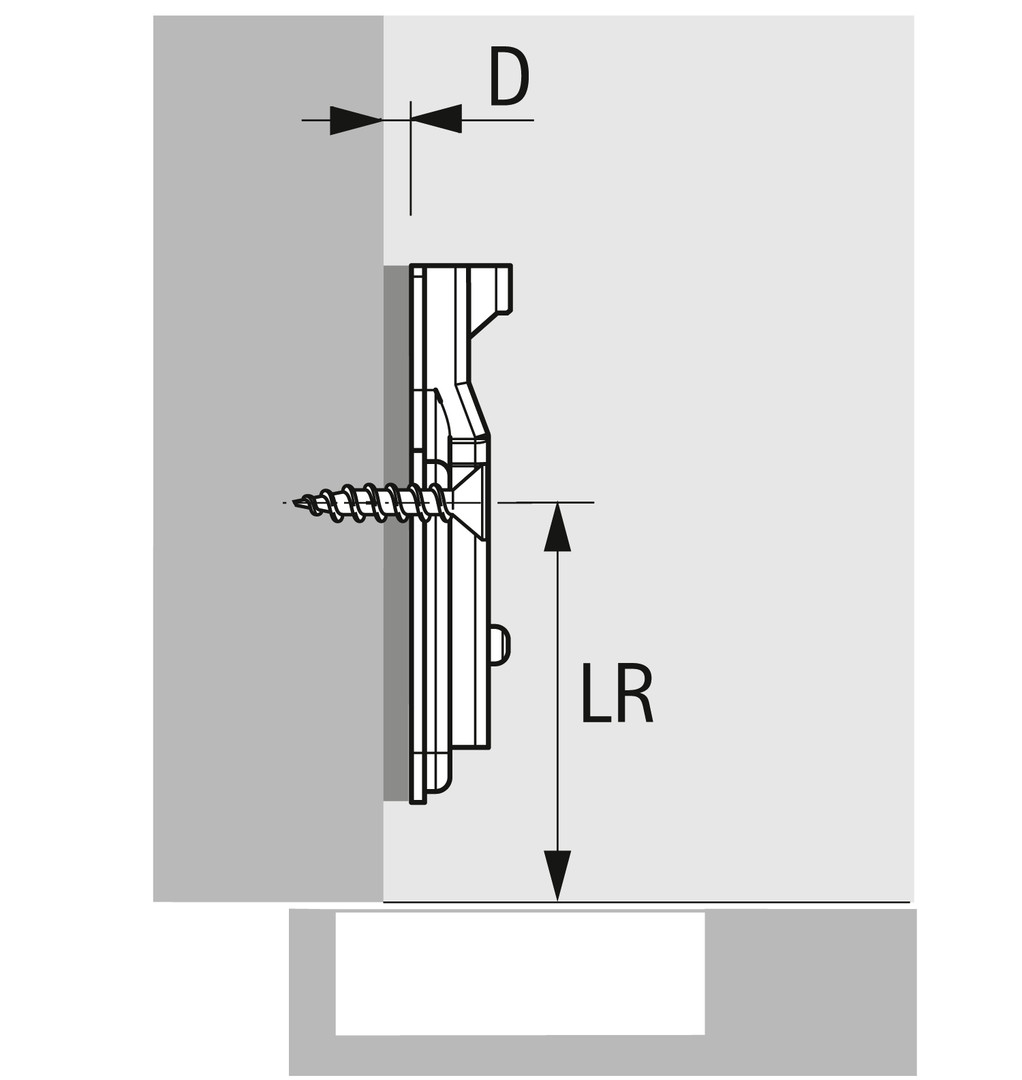 HETTICH Veosys Kreuzmontageplatte zum Anschrauben, Lochreihe 37 x 32 mm, Distanz 0,0 mm