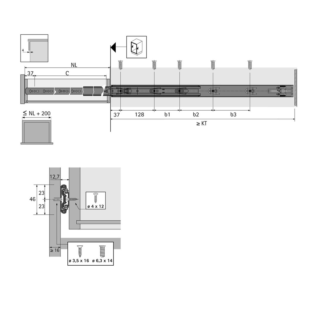 HETTICH Vollauszug Kugelauszug KA 4532-Set - links/rechts - Seitenmontage - 12,7 mm Einbaubreite - Push to open - 35 kg - 400 mm