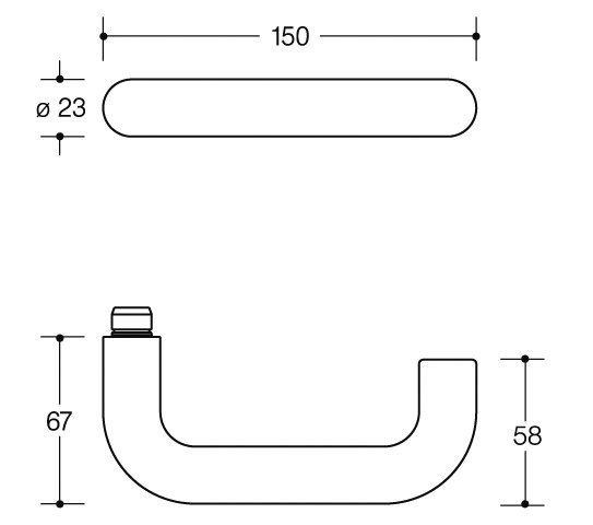 HEWI Drückerlochteil in R-Technik, Türdrücker aus Polyamid mit durchgehendem Stahlkern, Durchmesser 23 mm, der Türdrücker erfüllt die Vorgaben der DIN EN 179 und DIN 18040, Für Vierkantstift 7, 8, 8,5, 9 oder 10/8 mm abgesetztkompatibel mit folgenden Rosetten und Schildern: 305.23R, 315.23R, 230.23R, 235.23R, 285.23R.