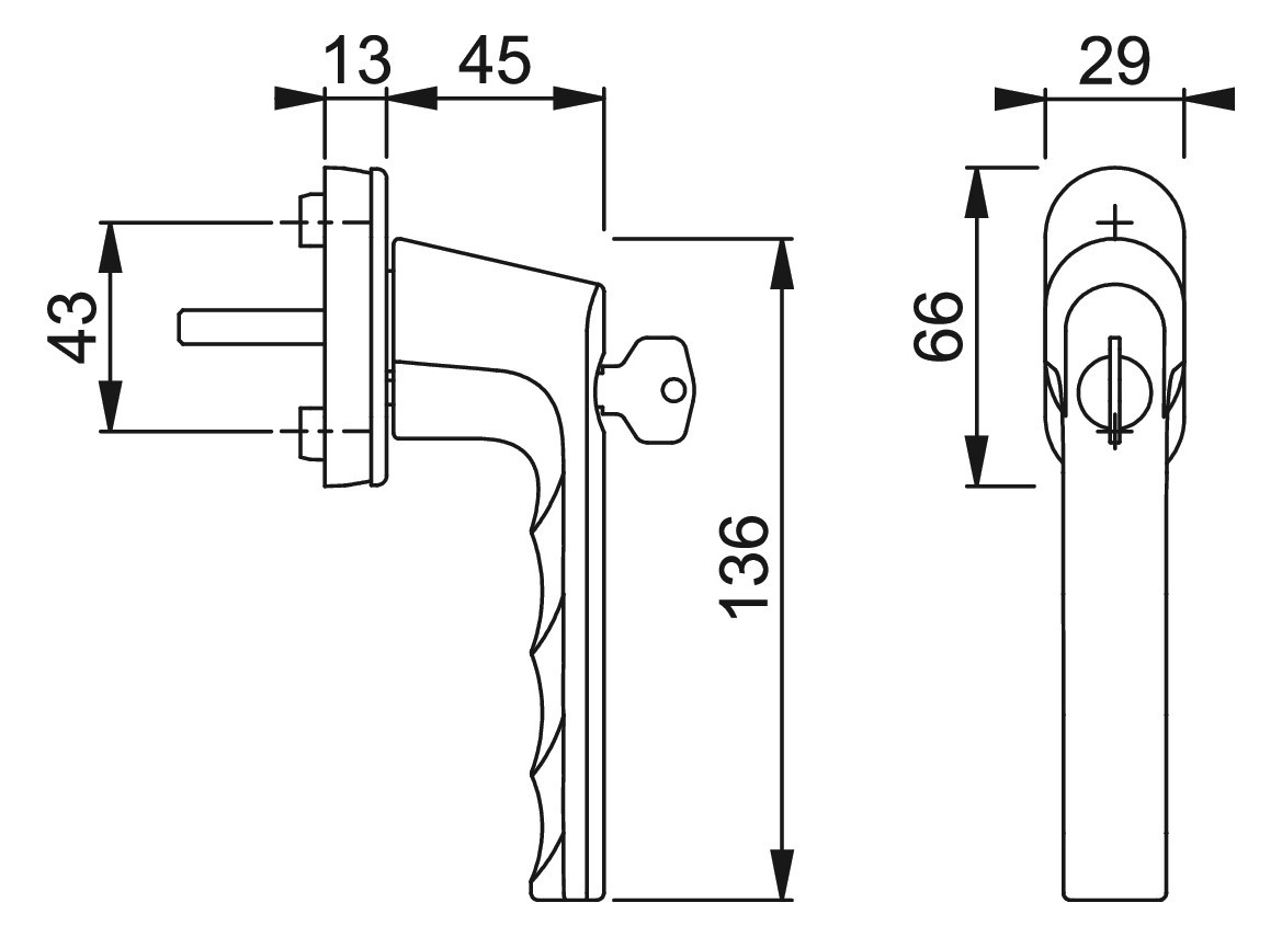 - Stift: HOPPE-Vollstift, 10 mm Längenvariabilität, stufenlose Anpassung durch integrierte Druckfeder im Griffhals