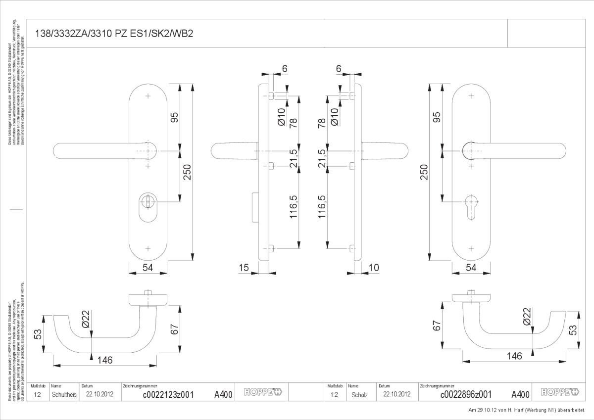 HOPPE-Aluminium-Schutz-Langschild-Türgriff-Garnitur mit Zylinder-Abdeckung für Außen-/Wohnungsabschluss-Türen