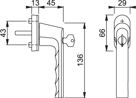 - Schließung: Drehzylinder, Wendeschlüssel, in 90°-Stellung abschließbar