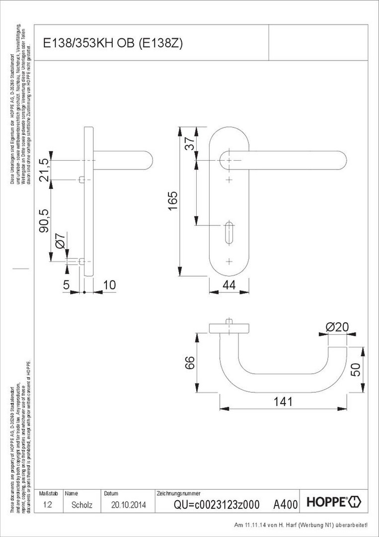 - Lagerung: Türgriffe fest/drehbar, Rückholfedern, HOPPE-Steckgriff-Verbindung mit Kugel-Arretierung Sertos ®, wartungsfreie Gleitlager