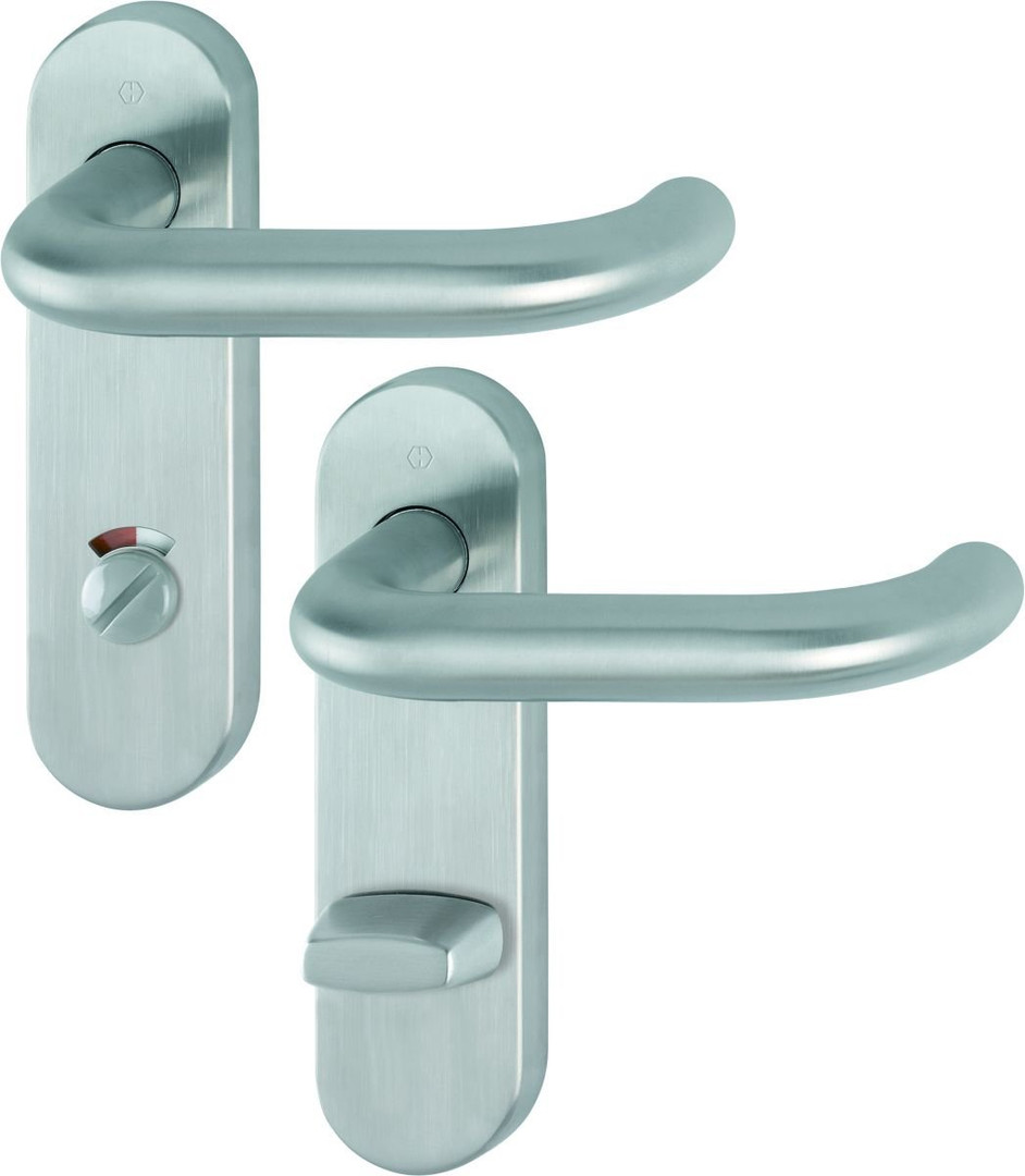 HOPPE Obj.-Kurzschild-Drücker-Garnitur "Paris" - Edelstahl - Bad / WC