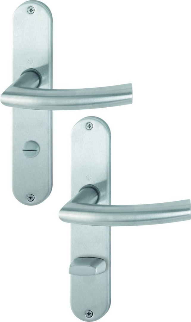HOPPE-Edelstahl-Langschild-Türgriff-Garnitur mit Schlitzkopf/Olive für Bad/WC-Türen