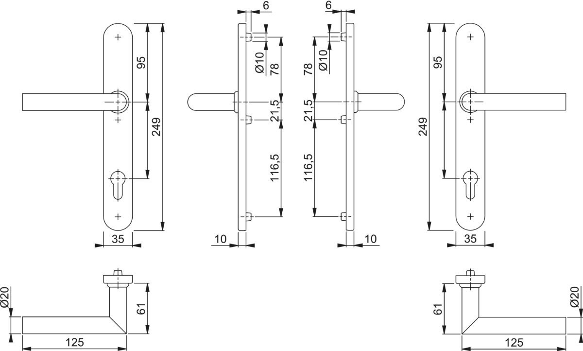 HOPPE-Edelstahl-Schutz-Schmalschild-Türgriff-Garnitur für Profiltüren: