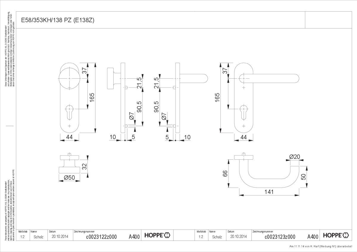 HOPPE Z.T. Kurzschild Wechselgarnitur Paris Edelstahl PZ E58/353KH/138