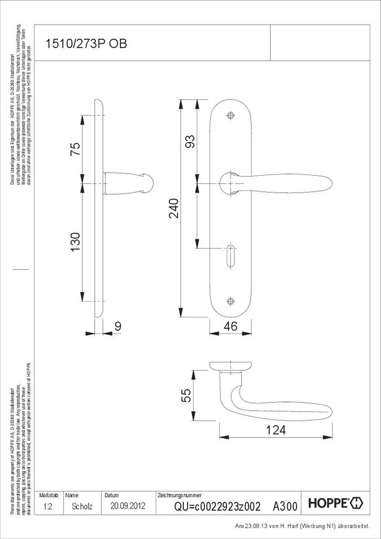 HOPPE Z.T. Langschild-Drücker-Garnitur "SSV Verona" - Alu F1 - BB