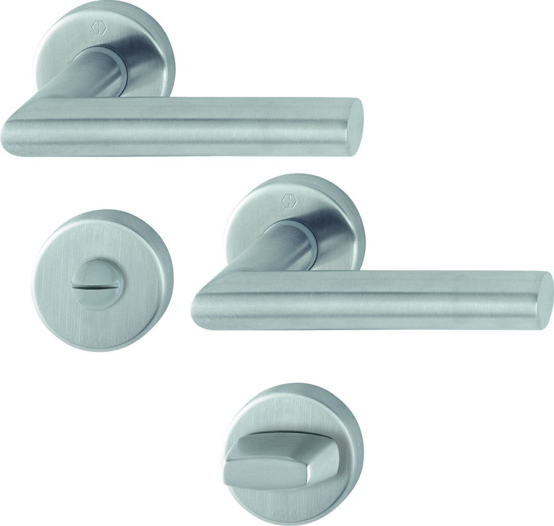 HOPPE-Edelstahl-Rosetten-Türgriff-Garnitur mit Schlitzkopf/Olive für Bad/WC-Türen