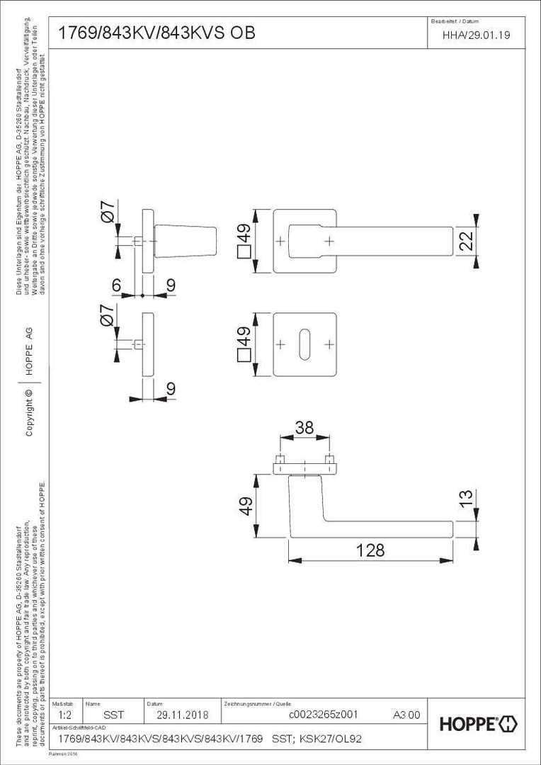 HOPPE ZT Rosetten-Dr-Grt Austin, Schwarz F9714M, BB, 1769/843KV/843KVS