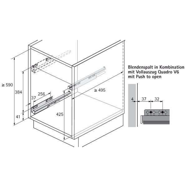 • Vollauszug Quadro V6 mit Dämpfung Silent System und Einlegeböden bitte separat bestellen
