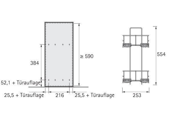 • Lichte Mindestkorpusmaße - Breite 262 mm - Tiefe 495 mm - Höhe 590 mm