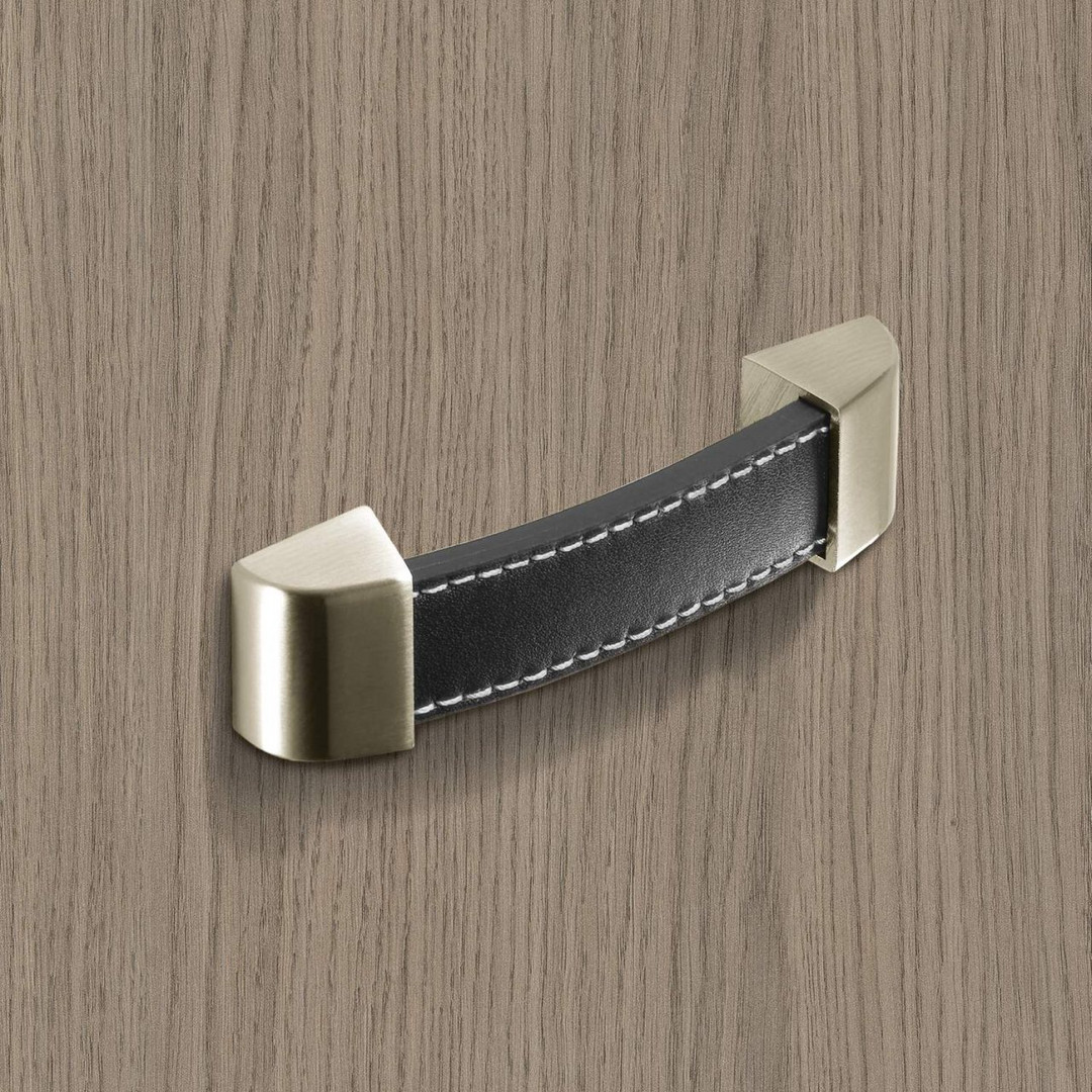 Hettich Griff Agliano, Bohrabstand 128, L 142 mm, B 25 mm, H 17 mm, Leder braun / Edelstahl Optik gebürstet