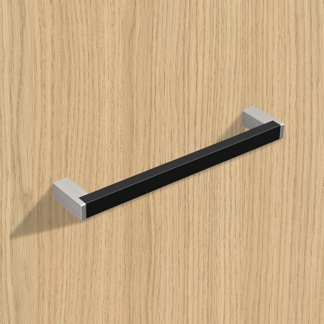 Hettich Griff Bermeo, Bohrabstand 320, L 333 mm, B 12 mm, H 32 mm, Schwarz matt / Edelstahl Optik gebürstet