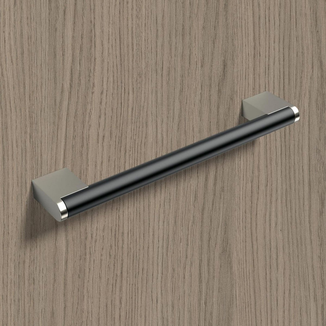 Hettich Griff Brema, Bohrabstand 192, L 204 mm, B 14 mm, H 35 mm, Schwarz matt / Edelstahl Optik gebürstet
