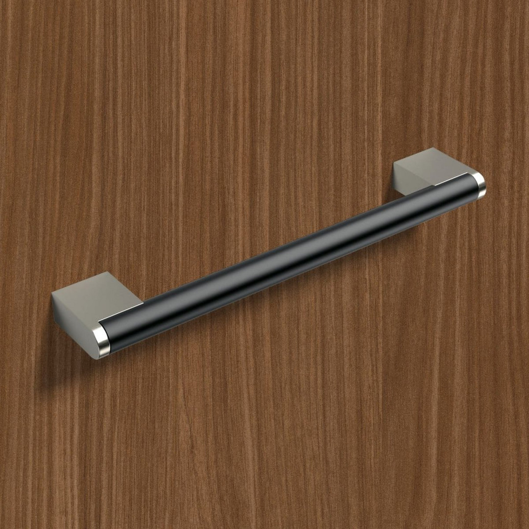 Hettich Griff Brema, Bohrabstand 192, L 204 mm, B 14 mm, H 35 mm, Schwarz matt / Edelstahl Optik gebürstet