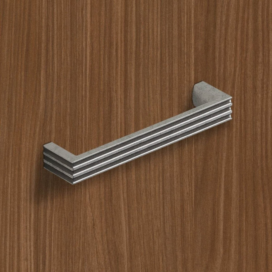 Griff Cato, Bohrabstand 128, L 138 mm, B 17 mm, H 30 mm, Zinn Optik antik