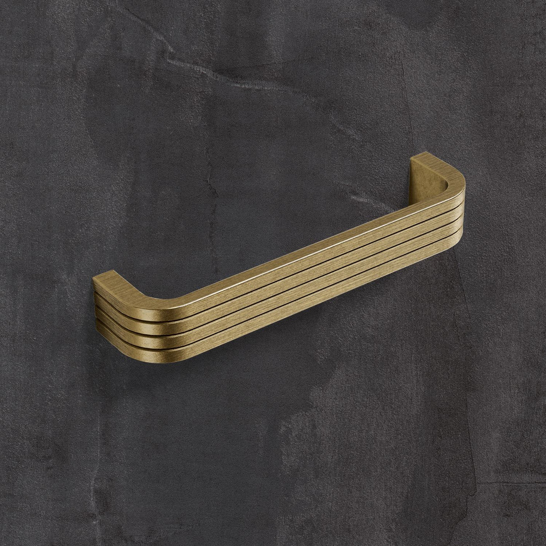 Griff Pomezia, Bohrabstand 96, L 104 mm, B 20 mm, H 30 mm, Messing Optik antik