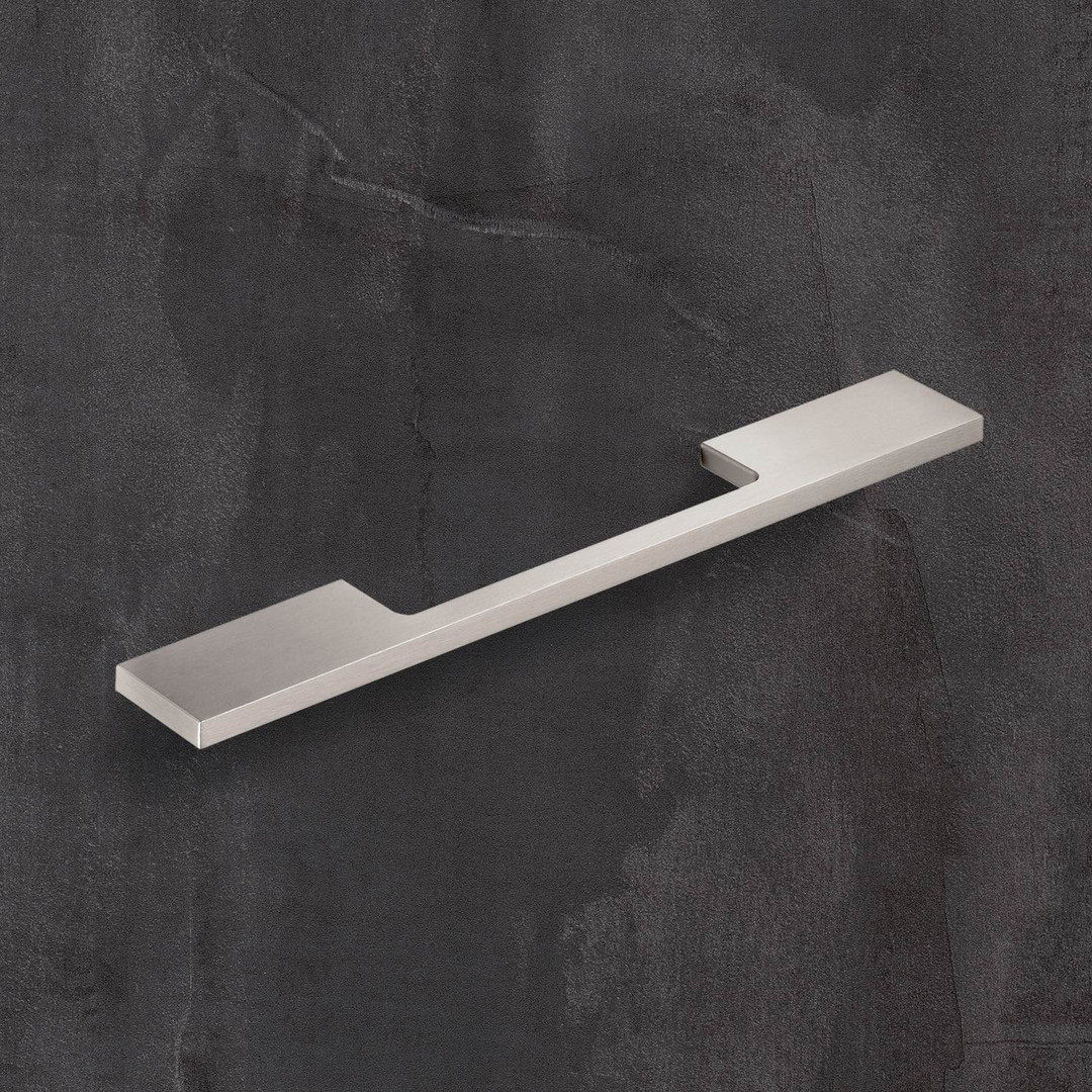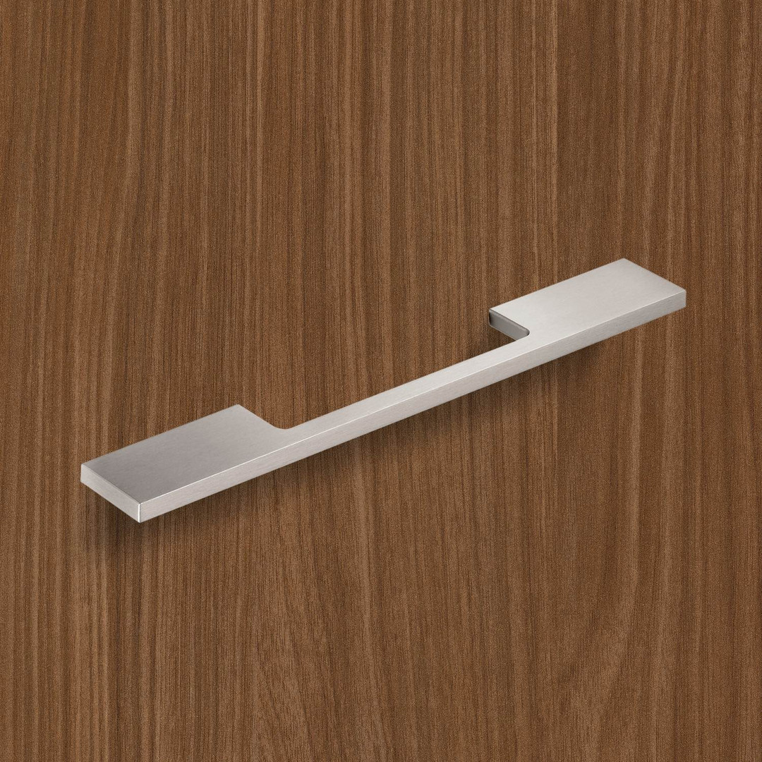 Hettich Griff Velitra, Bohrabstand 128 / 192 mm, L 204 mm, B 7 mm, H 34 mm, Edelstahl Optik gebürstet