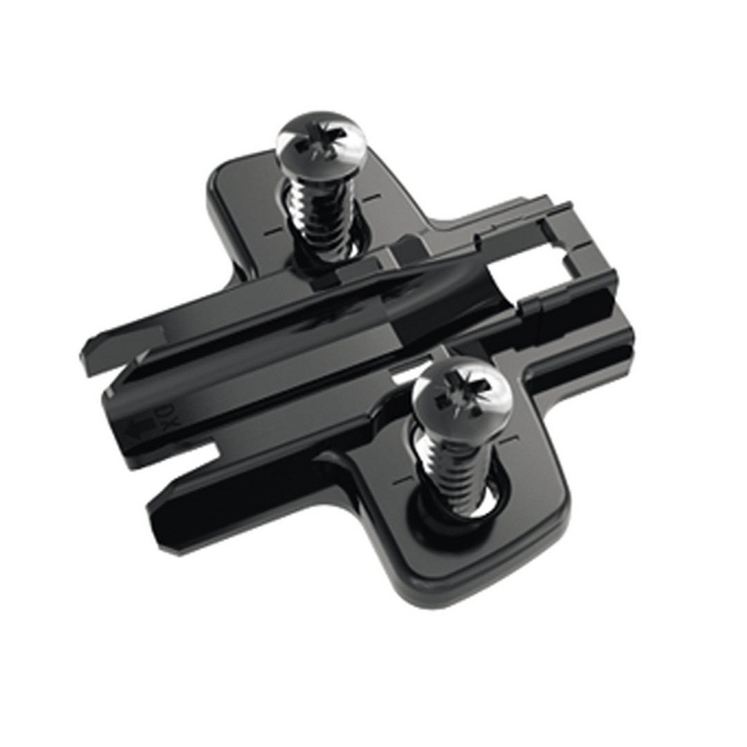 Hettich Kreuzmontageplatte mit Langloch-Höhenverstellung, in obsidianschwarz, Lochreihe 37 x 32 mm, mit Euroschrauben (für Bohrung ø 5 x 12 mm), Distanz 0,0 mm