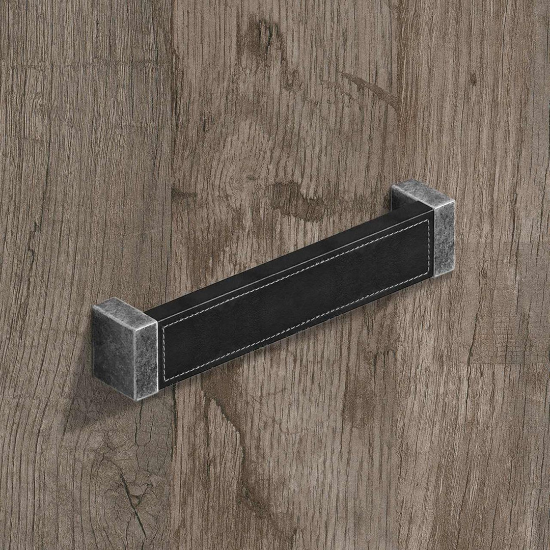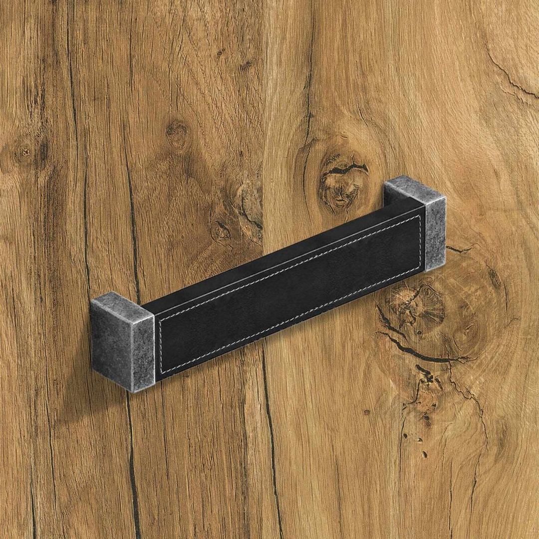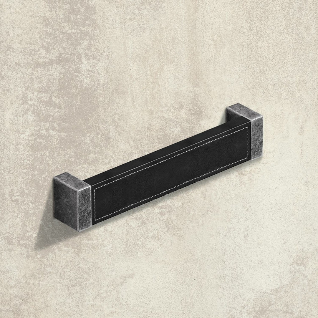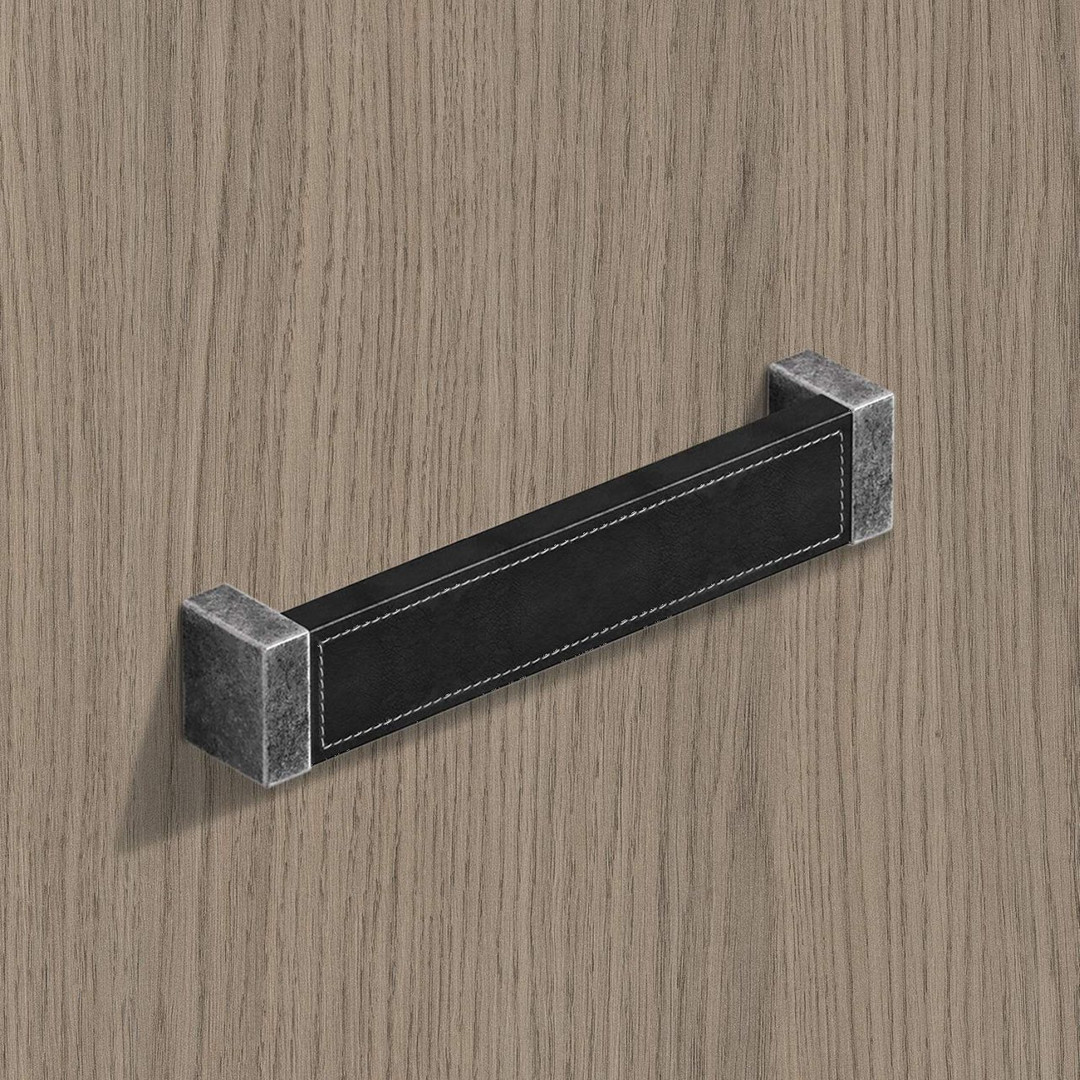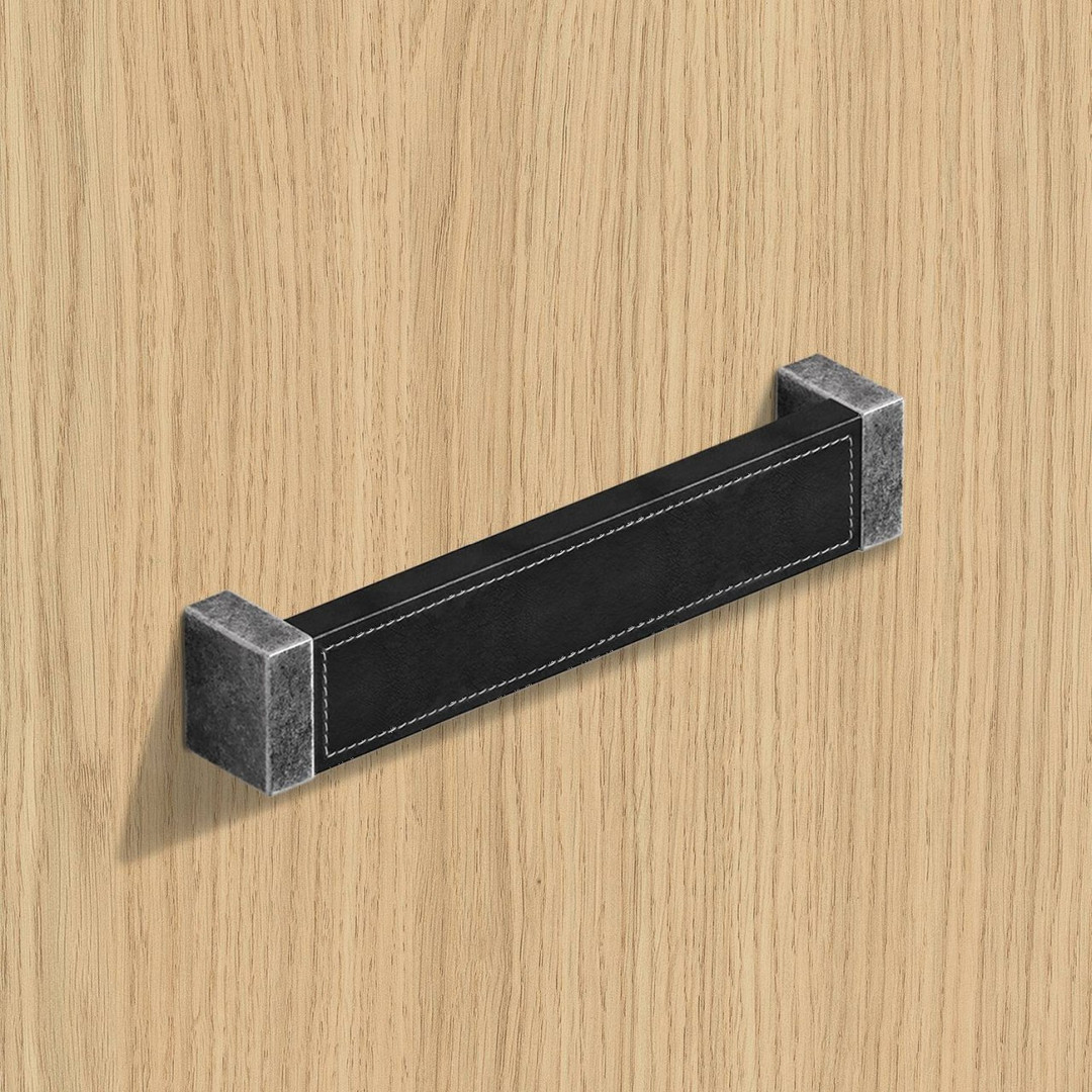 Griff Arago, Bohrabstand 192, L 208 mm, B 40 mm, H 33 mm, Leder schwarzgrau / Zinn Optik antik