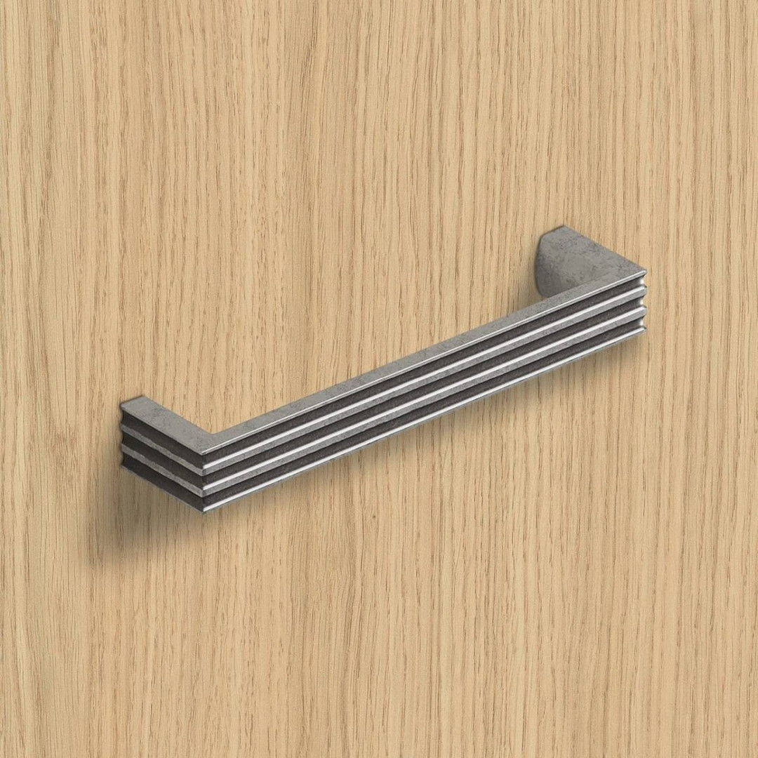 Griff Cato, Bohrabstand 128, L 138 mm, B 17 mm, H 30 mm, Zinn Optik antik