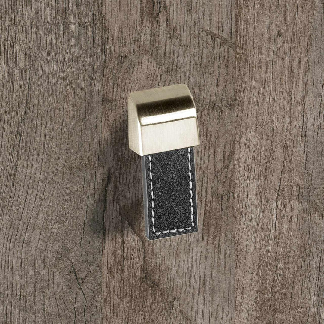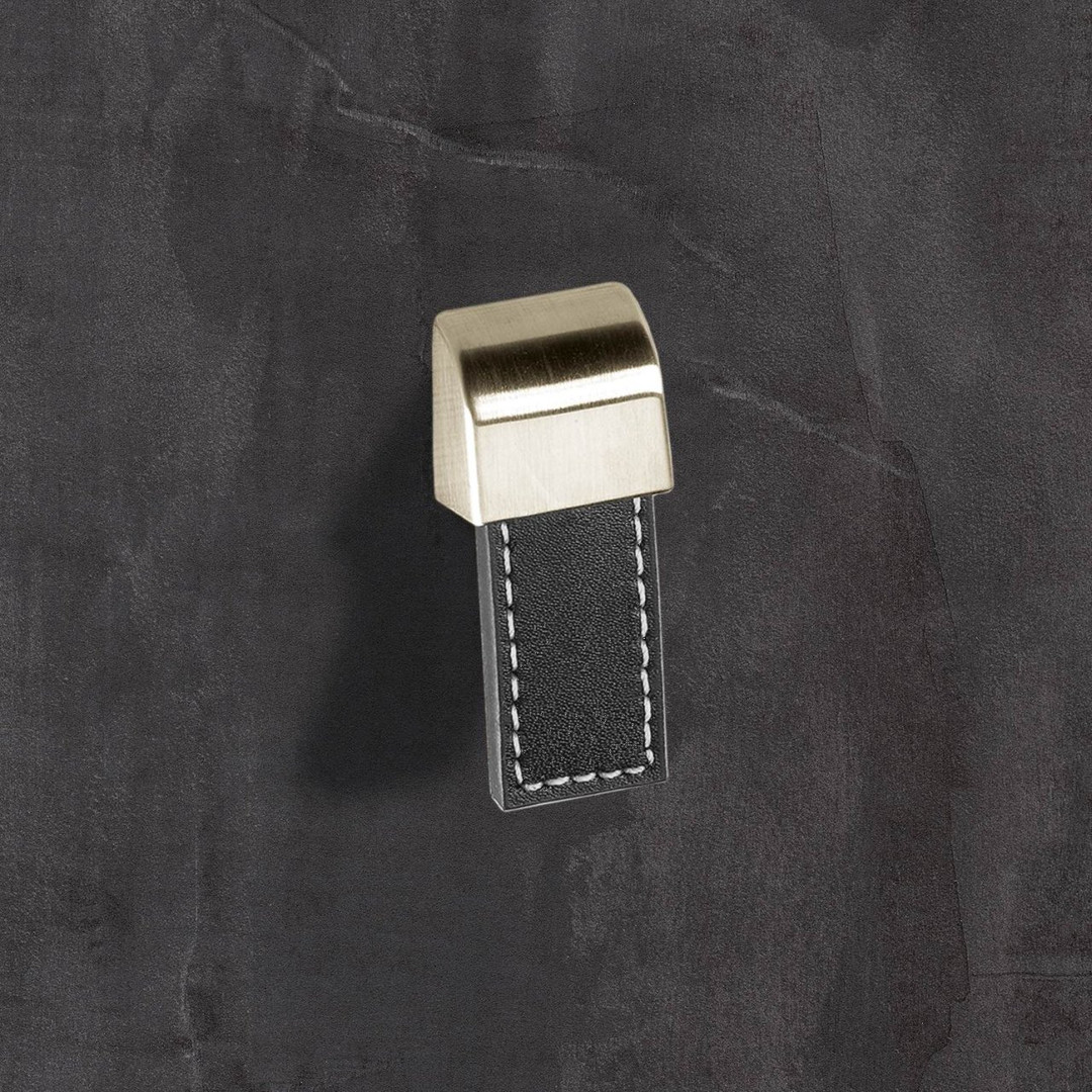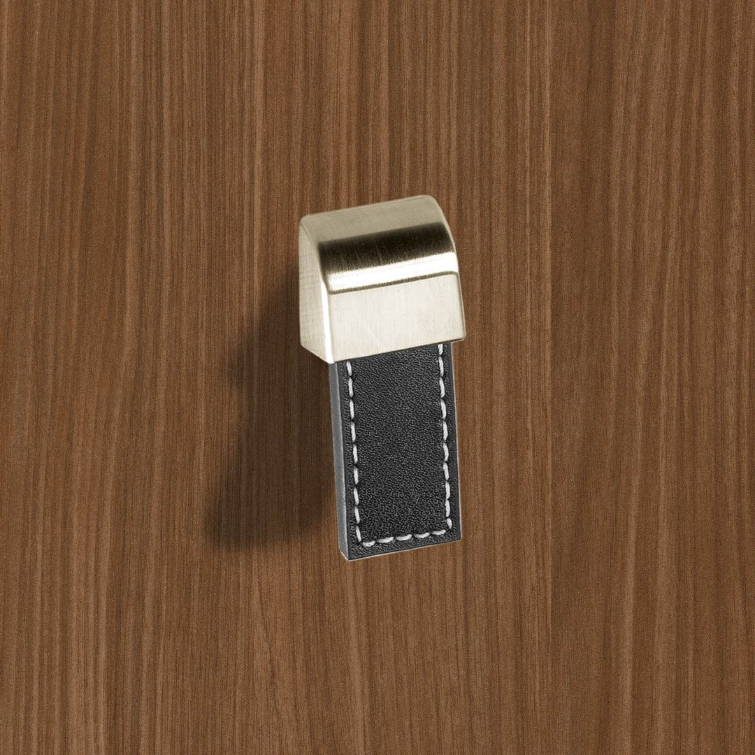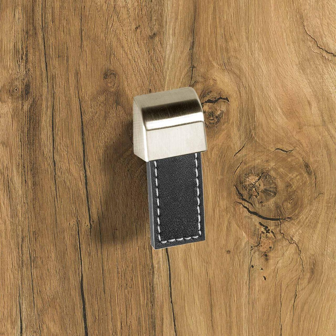 Hettich Möbelknopf "Agna" - 20x50mm - Leder braun / Edelstahl Optik gebürstet