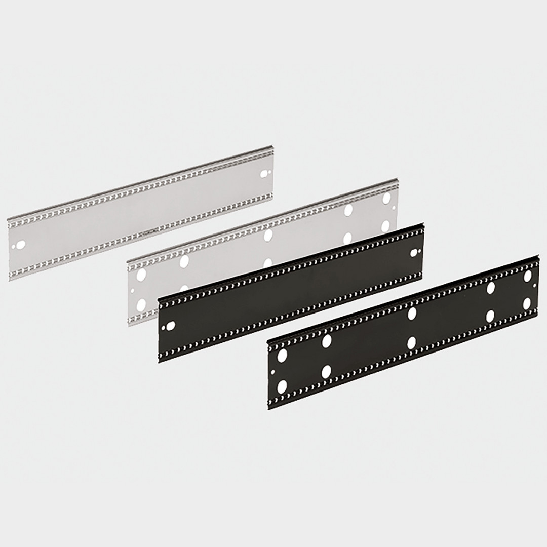 - Sollen Breitwandschübe mit Karteibahnen, Fachteilern oder Trennwänden organisiert werden, muss zunächst die OrgaLine an den Vorder- und Hinterseiten der Breitwandschübe montiert werden. In Verbindung mit der Trennwand kann alternativ zur OrgaLine auch der OrgaClip eingesetzt werden.