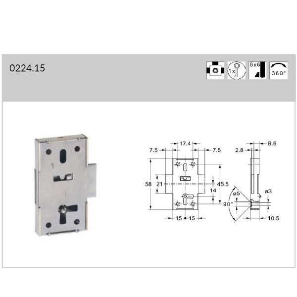 JUNIE Briefkastenschloss Stahl blank 222 Dornmaß 15mm