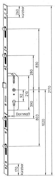 Mit fünffach Rollzapfen-Riegel-Arretierung, vorgerichtet für PZ, Entfernung 92 mm, 10 mm Nuss, rechts und links verwendbar durch umstellbare Falle, Rollzapfengetriebe mit 20 mm Hub und 4 verstellbaren Schließzapfen, Rollzapfenhöhe bei Flachstulp 8 mm, bei U-Profilstulp 6 mm, starke Konterfeder mit geschlossenem Kasten, Falle und Riegel mit Stulp bündig und glanzvernickelt, Stulpausführungen: F = Flachstulp, U = U-Stulp 6 x 24 x 6 mm, hell verzinkt.