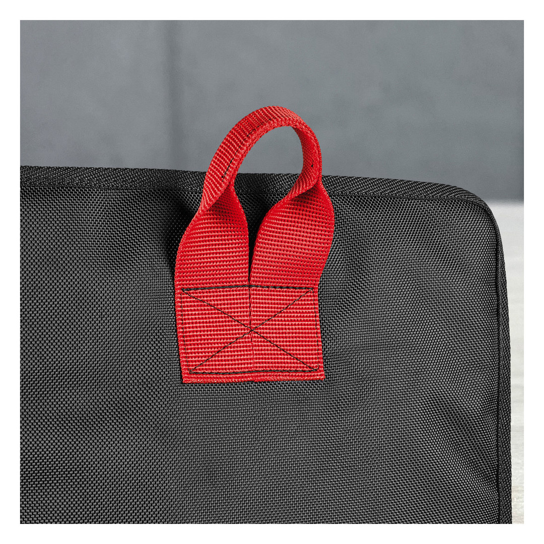 Wertige und robuste Führungsschienentasche mit Außenfach und innenliegender Einstecktasche. Zusätzliche Klettbänder schaffen eine sichere Transportmöglichkeit für mehrere Führungsschienen. Die Tasche bietet Platz für Führungsschienen bis zu einer Länge von 1,6 m. Zur individuellen Kennzeichnung verfügt jede Tasche über einen Einschub für Visitenkarte oder Namensschild.