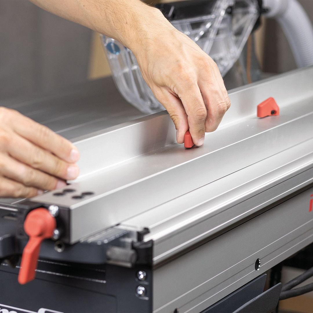 - Einfache Fixierung: Die Anschlagschiene kann sicher und einfach am Tischprofil fixiert werden.