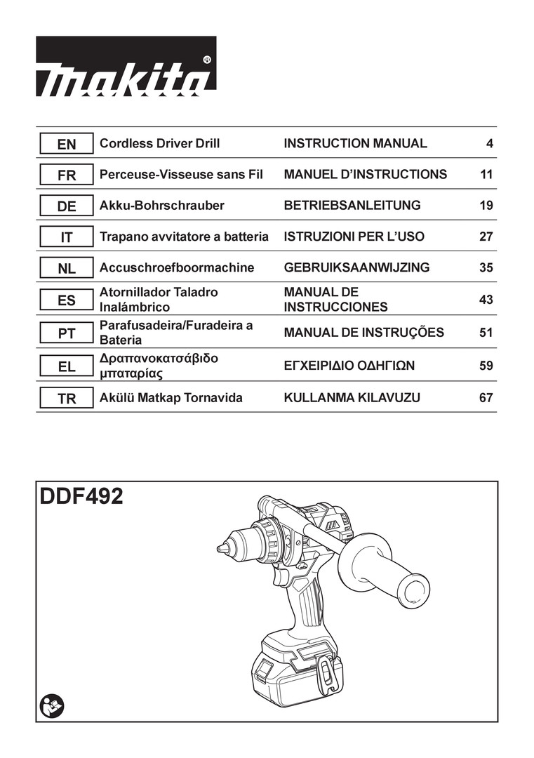 - 1x Makita Akku-Bohrschrauber DDF492Z