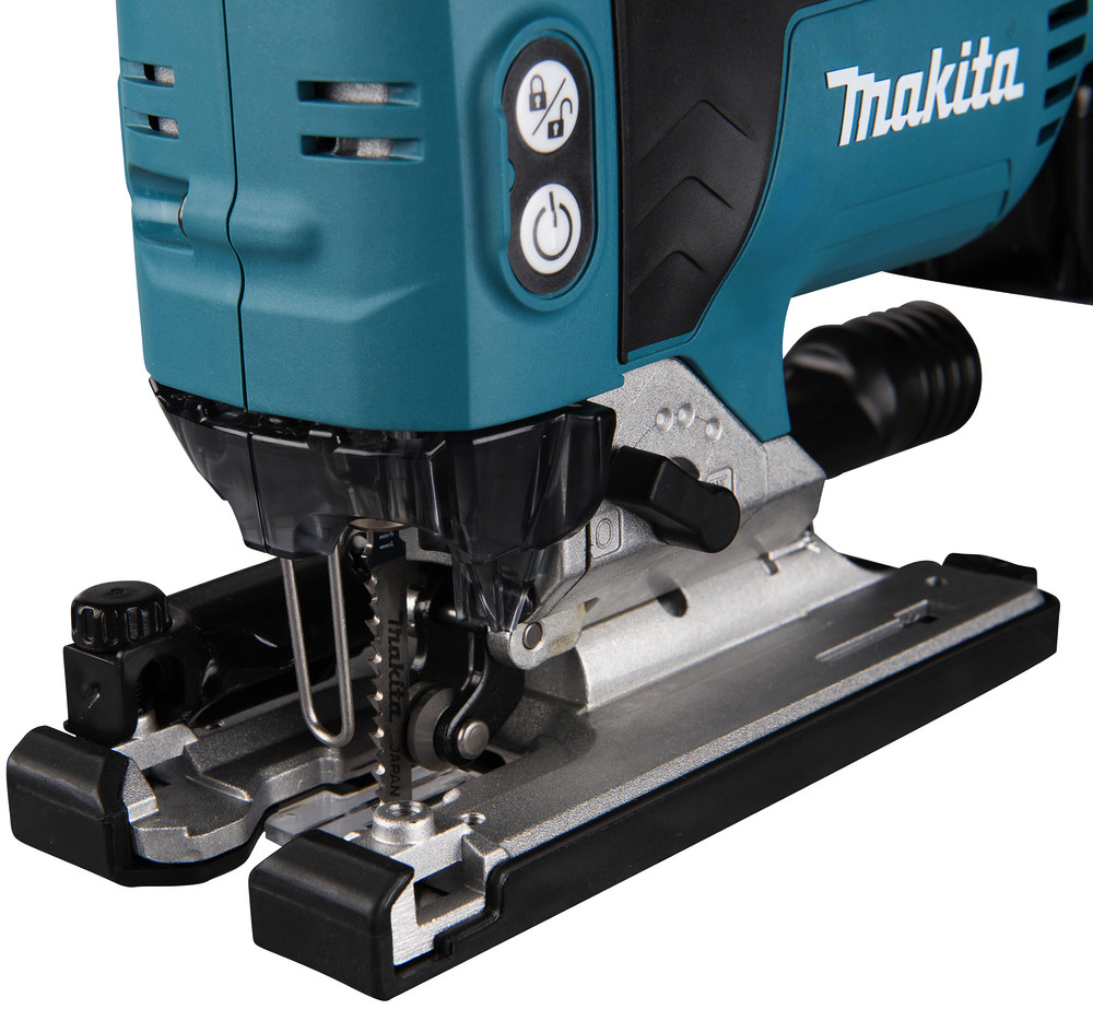 Eine leistungsfähige Säge mit dreistufiger Pendelhubeinstellung plus Neutralstellung und werkzeuglosem Sägeblattwechsel. Die Hubgeschwindigkeit kann je nach Werkstoff zwischen 800 und 3.500 min⁻¹ eingestellt werden. Die Hubhöhe liegt bei 26 mm und ermöglicht eine Schnittleistung von 135 mm bei Holz sowie 10 mm bei Stahl.