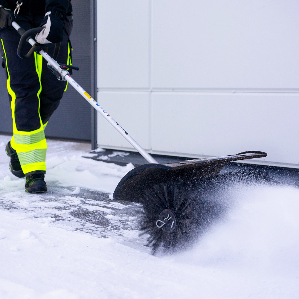 Kehrbürstenaufsatz (Bürstenbreite 60 cm) zum Reinigen von unebenen Flächen und Pfaden. Effektives Entfernen von beispielsweise Sand, Splitt und Schnittgut, bis hin zu grobem oder festsitzendem Schmutz.