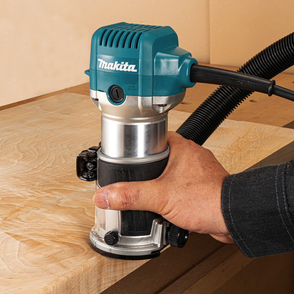 MAKITA Oberfräse / Kantenfräse / Trimmer RT0702CX2J 710 Watt im Makpac mit Ober- & Kantenfräsvorsatz 6+8mm Spannzange